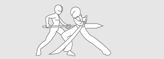 至近距離は危険な距離です。体が密接するぐらい近く、武器を振ると武器より腕が当たる距離です。この距離は互いにとって一番危険です。互いに次に何のアクションを取るか発見が出来ません。気づいた頃にはもう遅いです。