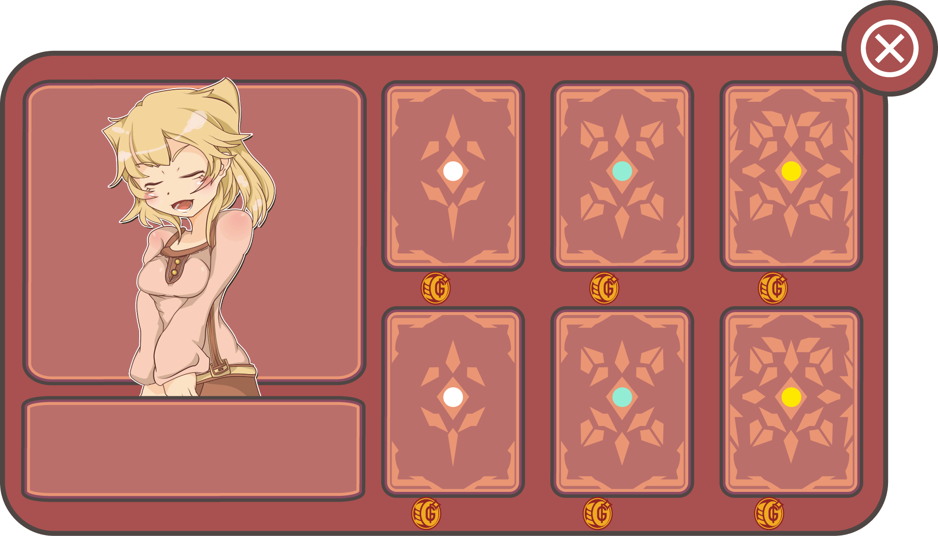仮ショップ画面の作成(キャラ絵は昔書いたやつを引っ張り出して貼ってるだけ)
